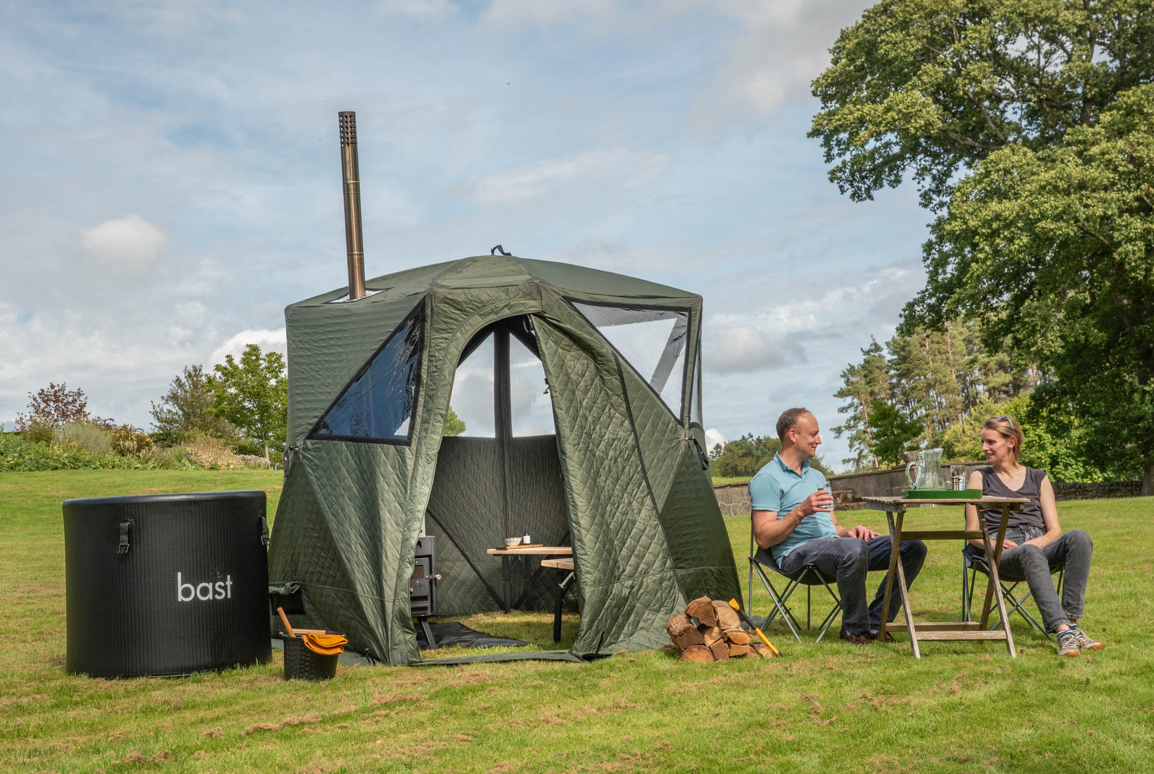 Our portable wood-fired sauna tents and plunge pools can be put up in your garden for you to enjoy a quiet time at home or discover a new location in the wild.